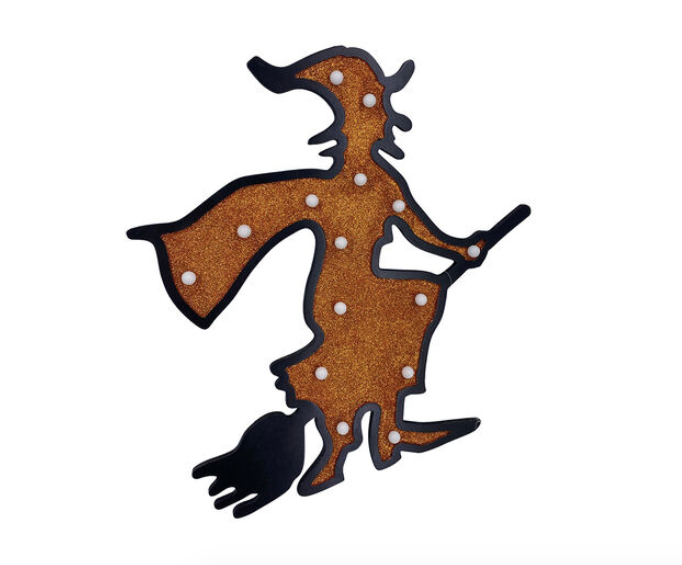 We love a witch silhouette around here, and this one done up in marquee lights and traditional Halloween colors really catches our eye. Bonus: It’s already marked down 30%!