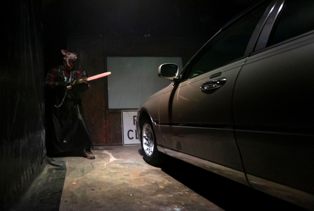 Omar Hanson performs in Horrorwood Video, an immersive drive-in theatre experience as the theater finds a way to continue to perform amid the coronavirus disease (COVID-19) restrictions, at Majestic Repertory Theatre in downtown Las Vegas, Nevada, U.S., October 26, 2020. REUTERS/Miranda Alam