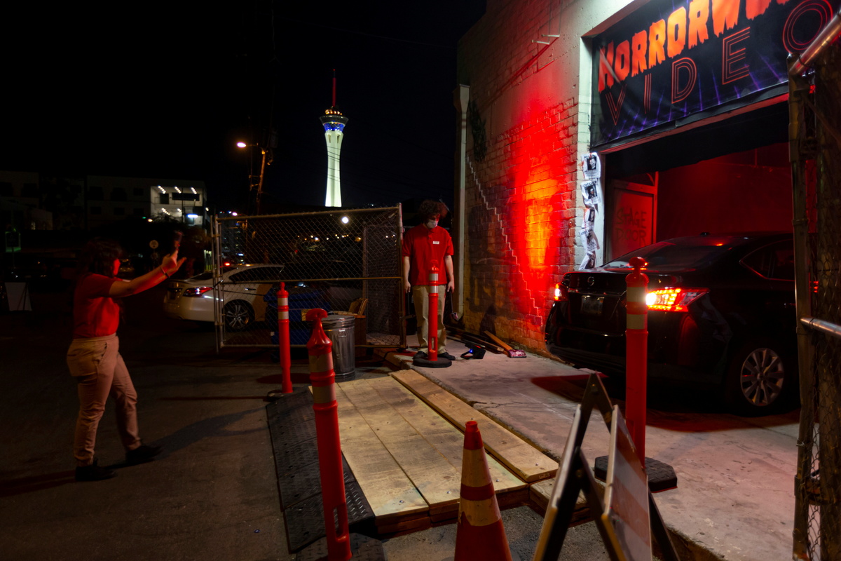 Caitlin Gibbons performs in Horrorwood Video, an immersive drive-in theatre experience as the theater finds a way to continue to perform amid the coronavirus disease (COVID-19) restrictions, at Majestic Repertory Theatre in downtown Las Vegas, Nevada, U.S., October 24, 2020. REUTERS/Miranda AlamVenus Cobb performs in Horrorwood Video, an immersive drive-in theatre experience as the theatre finds a way to continue to perform amid the coronavirus disease (COVID-19) restrictions, at Majestic Repertory Theatre in downtown Las Vegas, Nevada, U.S., October 26, 2020. REUTERS/Miranda Alam