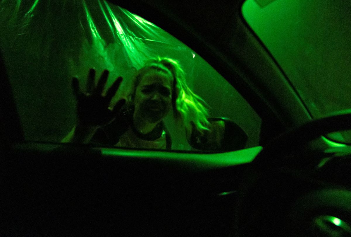 Lauren Tauber performs in Horrorwood Video, an immersive drive-in theatre experience as the theatre finds a way to continue to perform amid the coronavirus disease (COVID-19) restrictions, at Majestic Repertory Theatre in downtown Las Vegas, Nevada, U.S., October 26, 2020. REUTERS/Miranda Alam