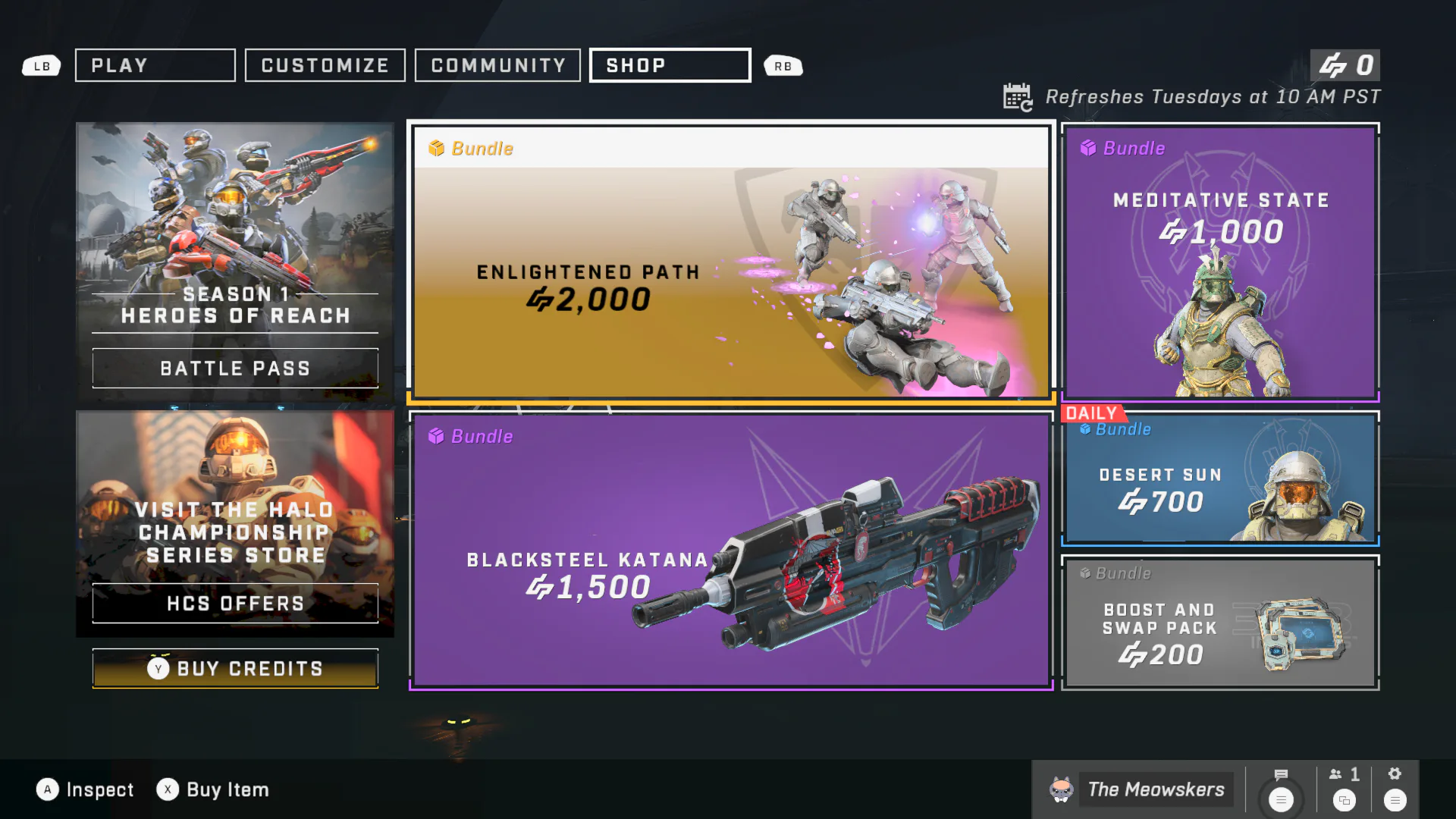 Kicking off 2022 with a brand new store update, Halo Infinite has plenty of fresh cosmetics for sale you can spend your credits on this week. Starting January 4, 2022, you’ll be able to purchase four new bundles including Enlightened Path, Blacksteel Katana, Meditative State, and Desert Sun, giving you weapon skins, charms, nameplates, and more. Here’s a breakdown of the newest Halo Infinite items available in the shop.