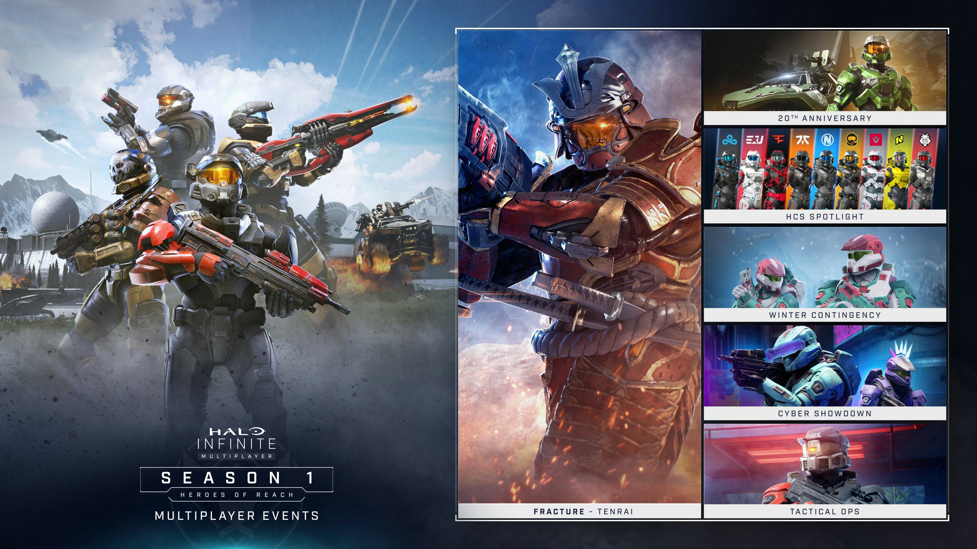 In the tweet that illustrated the first look at the Tenrai battle pass, 343 also announced Season 1 will include separate events for an HCS Spotlight, Winter Contingency, Cyber Showdown, and Tactical Ops. We’re not sure if these events will be different from a Fracture, but it sounds like they might be. In some instances, the passes for these rewards may only last for as long as the event is active.