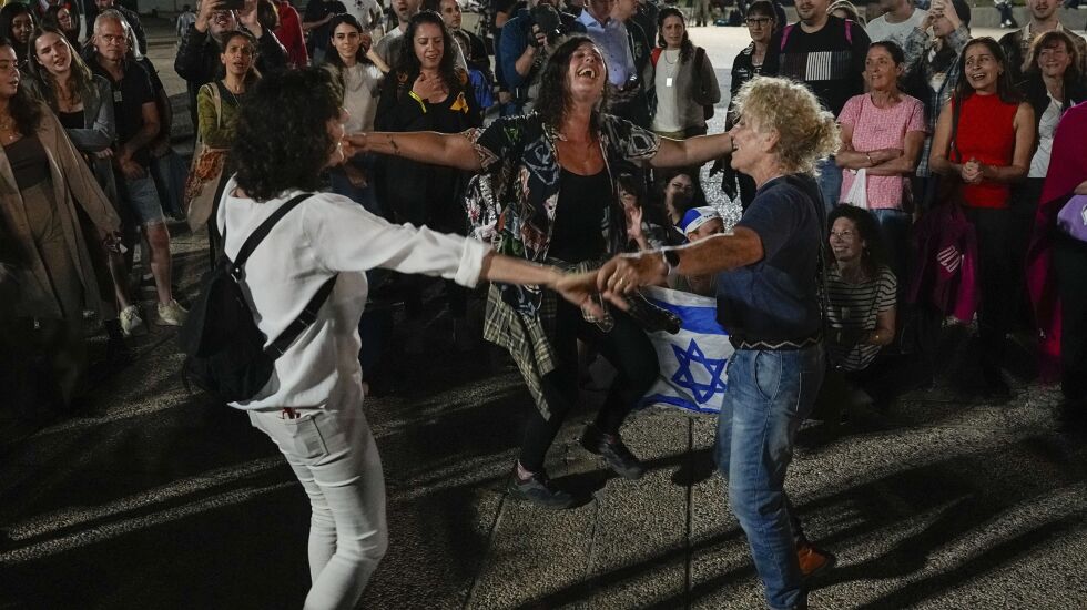At a plaza dubbed “Hostages Square” in Tel Aviv, a crowd of Israelis celebrated at the news.
