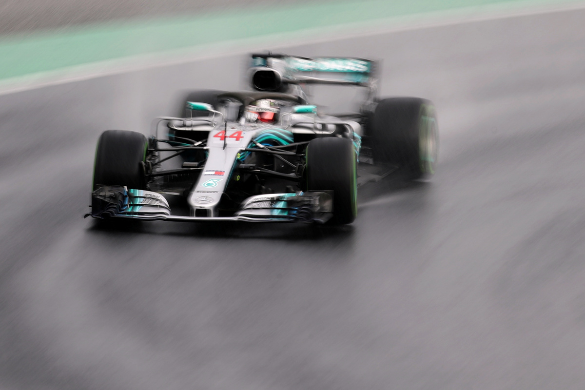 The Briton's Finnish team mate Valtteri Bottas will line up alongside on the front row of the starting grid for Sunday's race, when conditions are expected to brighten up, with Ferrari's Kimi Raikkonen and Sebastian Vettel behind.