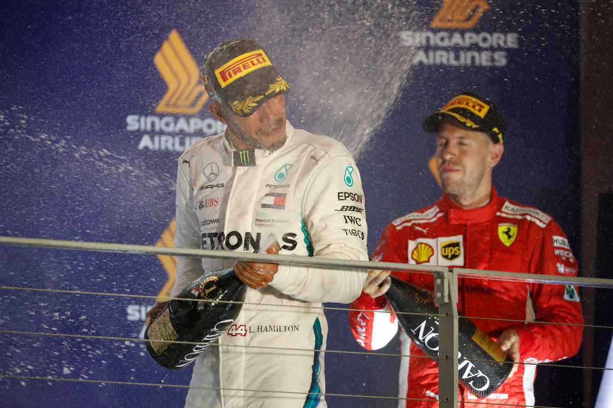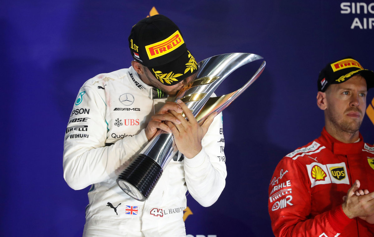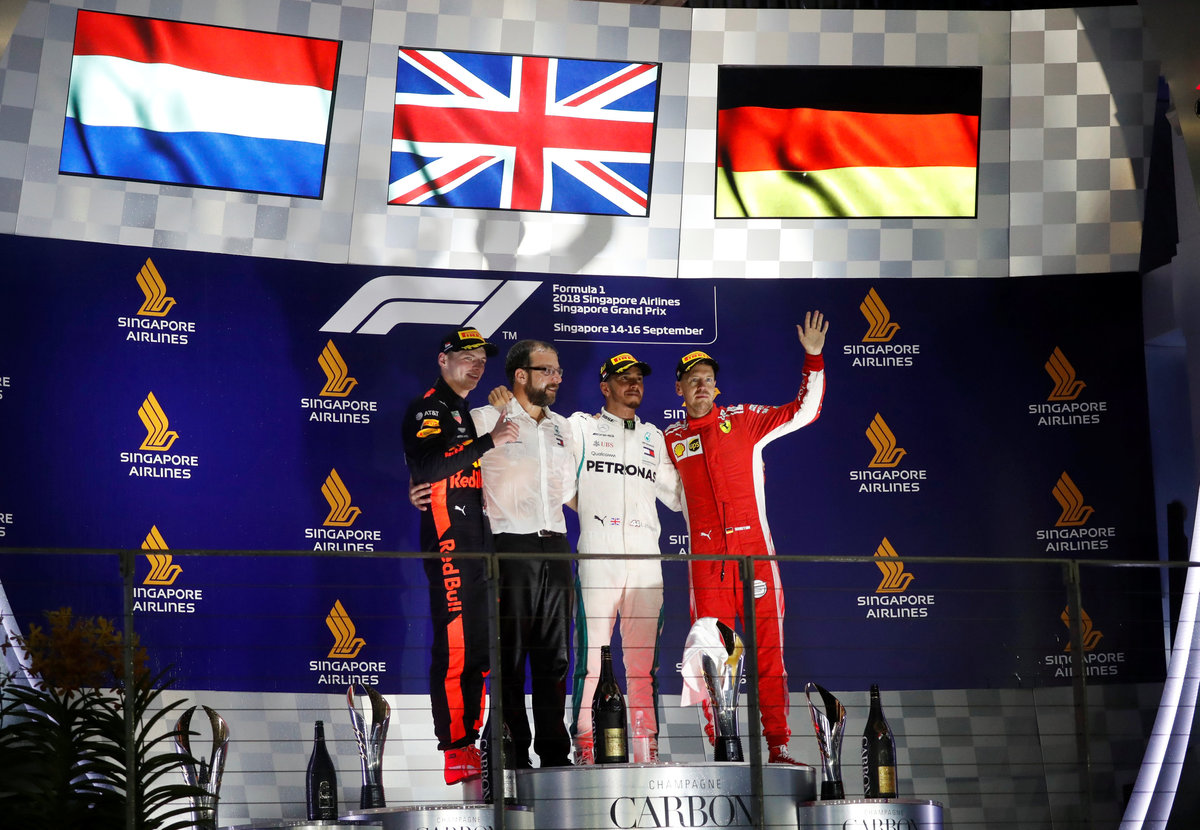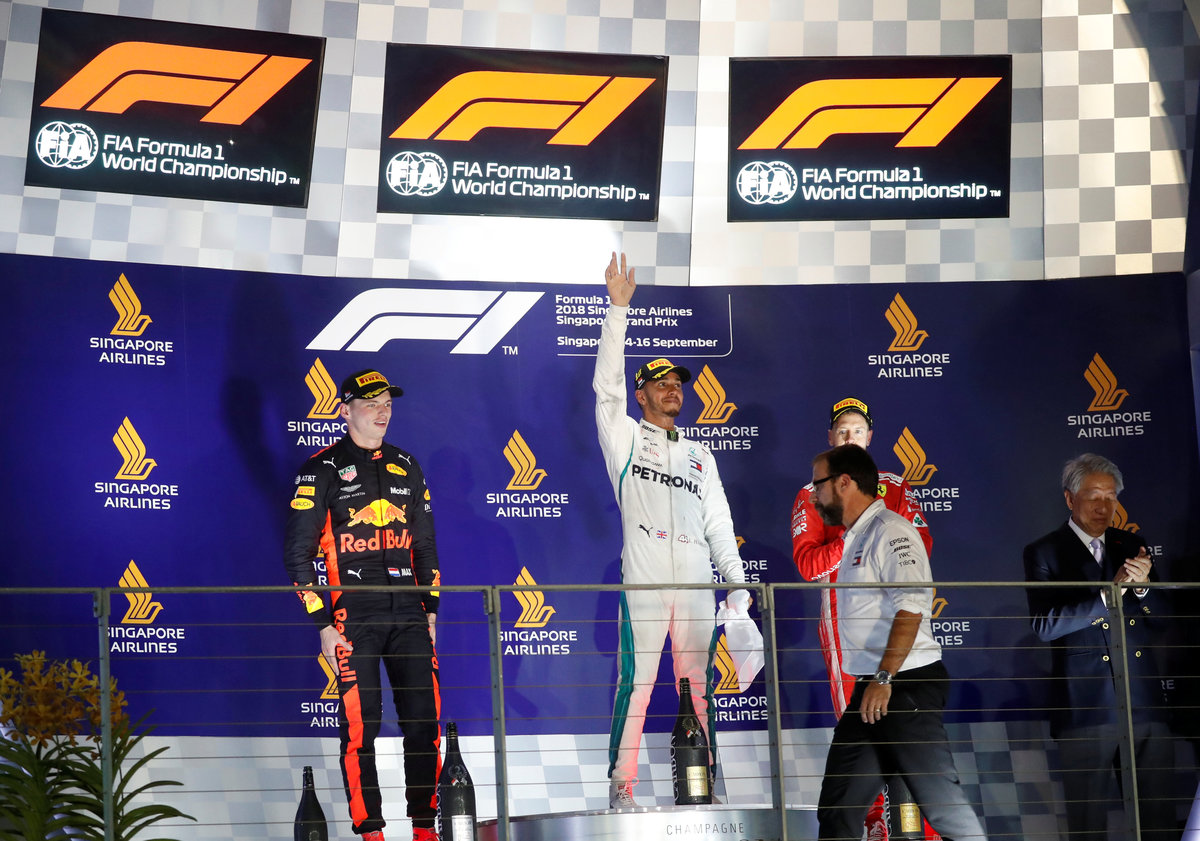 Hamilton held off a mid-race challenge from Red Bull's Max Verstappen to register a record-equalling fourth triumph at the floodlit Marina Bay Street Circuit track, while Vettel finished third to slip further behind in the title race.