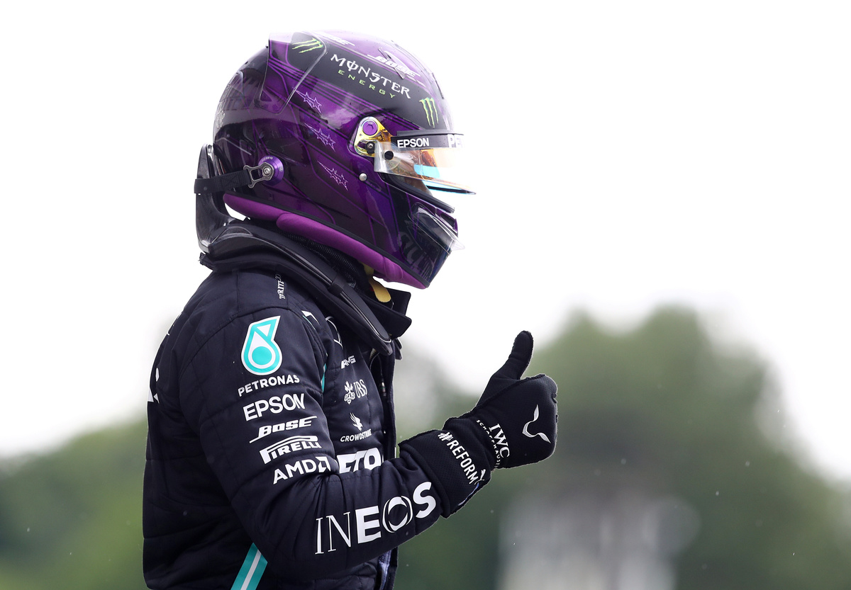 Championship-leading team mate Valtteri Bottas will start alongside the Briton on Sunday, with the Mercedes-powered Racing Point cars of Canadian Lance Stroll and Mexican Sergio Perez third and fourth.