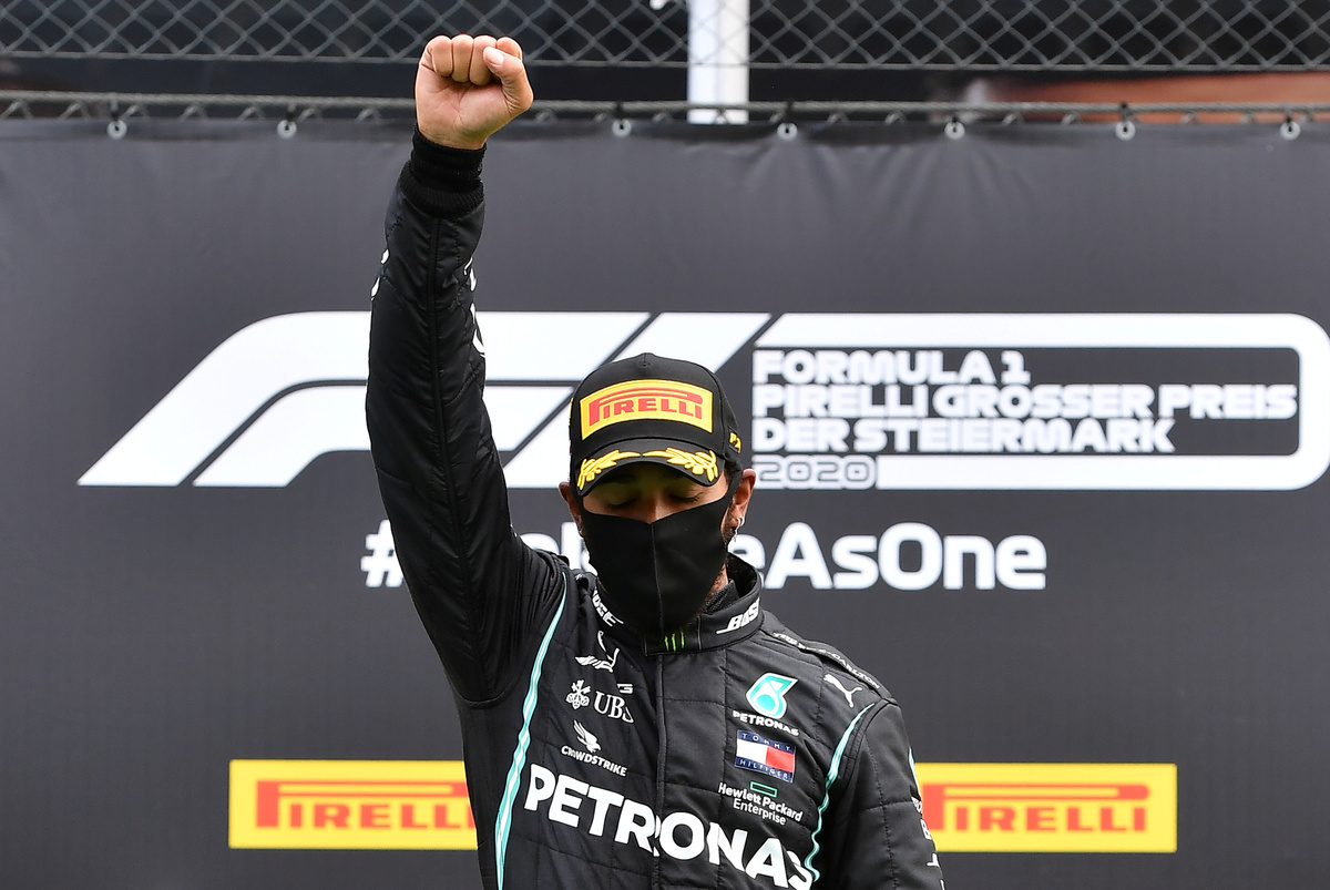 The Briton took a knee with 11 drivers before the race while wearing a Black Lives Matter T-shirt and then gave a raised fist salute on his car and on the podium after winning at the Red Bull Ring.
