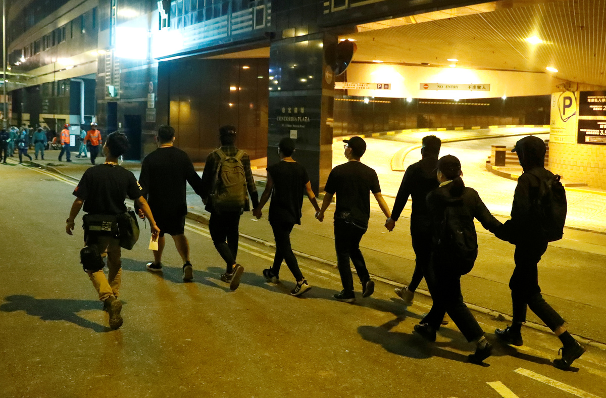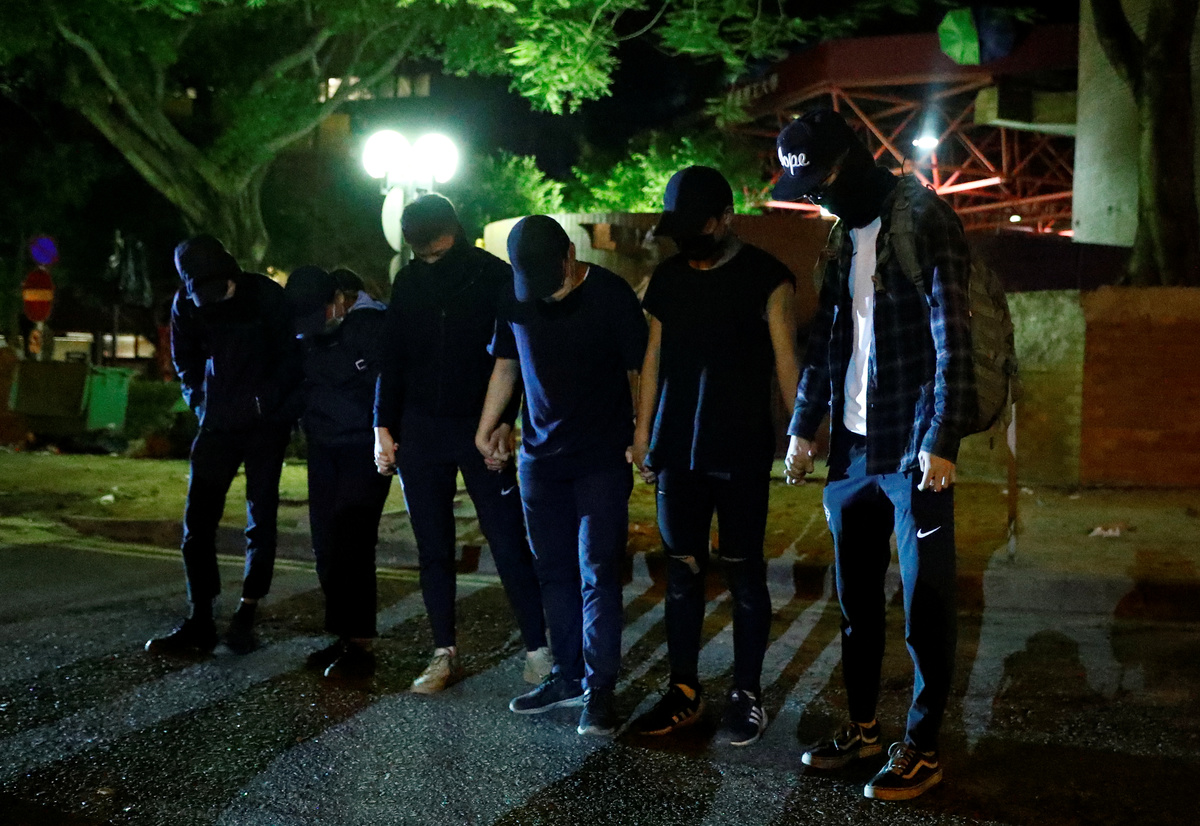 HONG KONG (Reuters) - At least eight protesters who had been holding out at a trashed Hong Kong university surrendered on Friday, while others searched for escape routes past the riot police surrounding the campus.