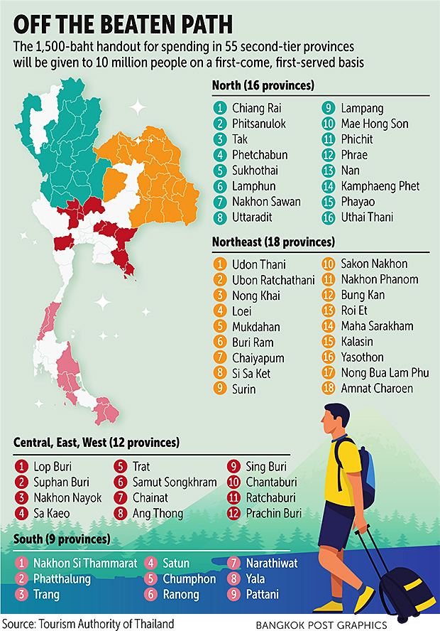 The source said the 1,500-baht cash handout is expected to help boost tourist numbers in second-tier provinces.