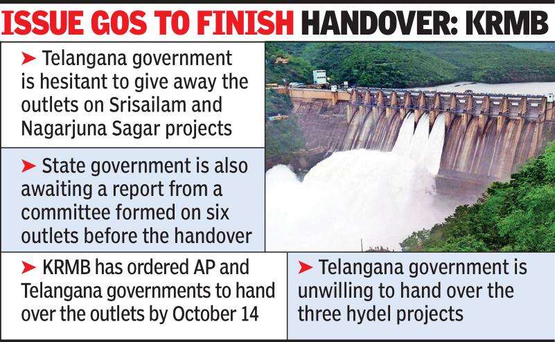 The KRMB has already ordered the state governments of AP and Telangana to hand over all outlets on the Srisailam and Nagarjuna Sagar projects by October 14.
