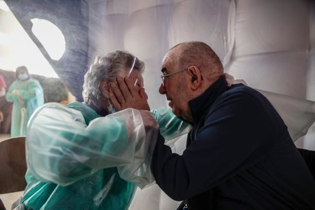 Their last hug was through plastic.