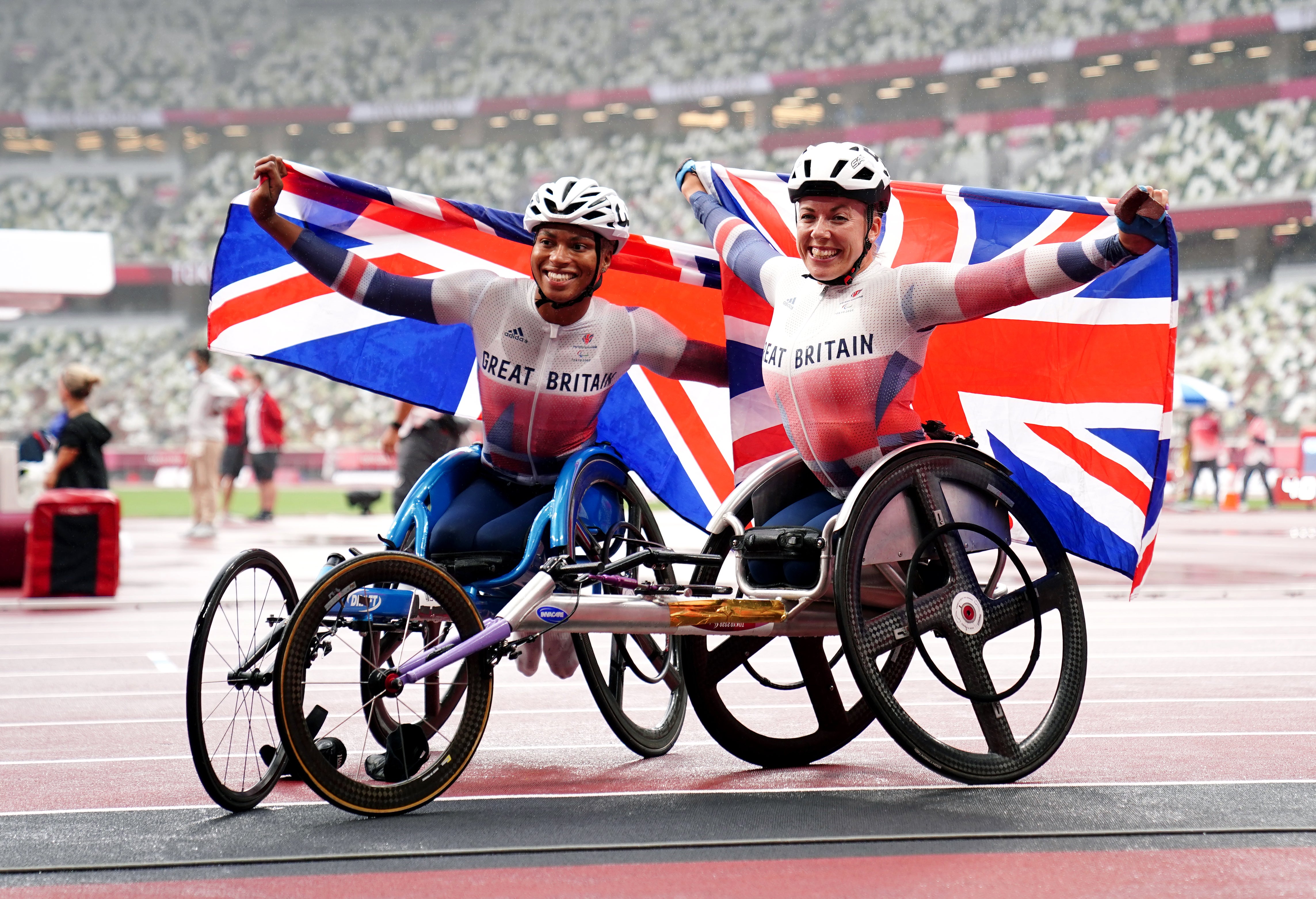 Her boyfriend, fellow GB athlete Nathan Maguire – winner of a silver in Friday’s 4x100m universal relay – failed to make it past the heats of the men’s T54 800m, a race won by 10-time world champion Marcel Hug, who collaborated with Swiss engineers to design his chair.