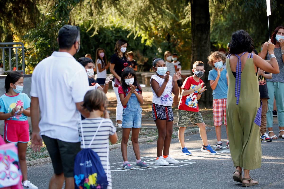 "There is a huge sense of excitement both on the part of us teachers and the children. We are very happy to see each other again, but it is also a struggle not to get too close," said Patrizia Zucchetta, a primary school teacher in Rome.