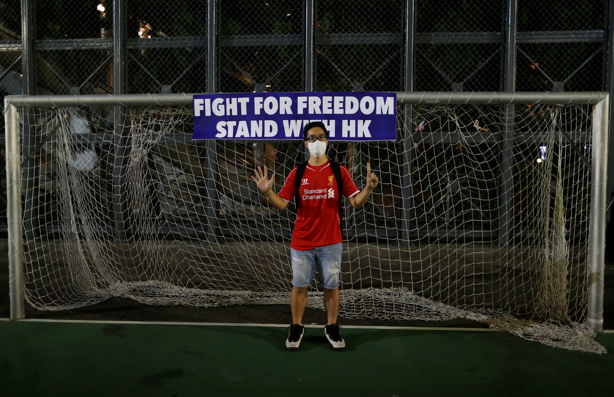A few hundred soccer fans, many wearing the strips of their favourite European teams, gathered in a Causeway Bay park on Wednesday for a human chain urging people to "fight for Hong Kong".