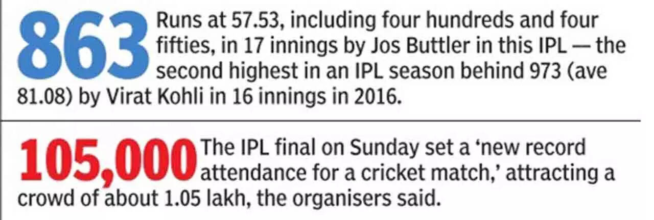 Playing at their home venue for the first time, the Titans thus enjoyed a sweet homecoming. Meanwhile, playing well below their potential, appearing completely subdued and off-colour with the bat, and relying too heavily on Jos Buttler, the Royals ran out of gas at the finishing line.