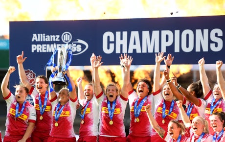 Sophie de Goede reduced Harlequins’ lead to five points with 14 minutes to go but another Tuima penalty secured their first title and a 25-17 win.