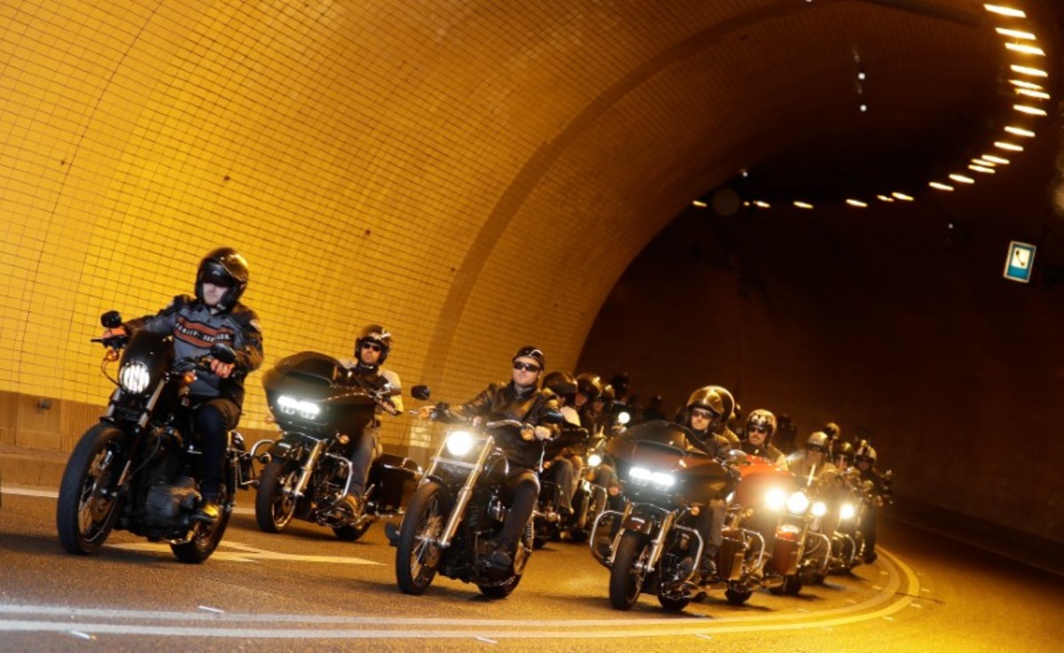 Some 4,000 bikers chosen in a lottery and clad in leather, denim and helmets of all sorts paraded through the city center on Saturday, revving motors and honking horns.