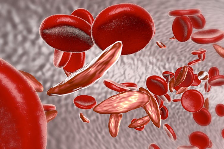 People with sickle-cell disease have a gene mutation that produces an altered form of haemoglobin, the protein in red blood cells that carries oxygen around the body. The altered haemoglobin produces long sickle-shaped blood cells that can get stuck in small blood vessels. This causes pain in the chest and joints, as well as anaemia, an increased risk of infections and other problems.