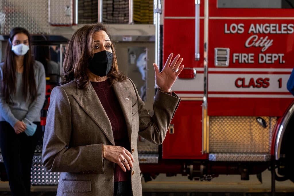 Harris and her husband, Doug Emhoff on Friday delivered doughnuts and holiday greetings to the firefighters at Los Angeles Fire Department Station 94.