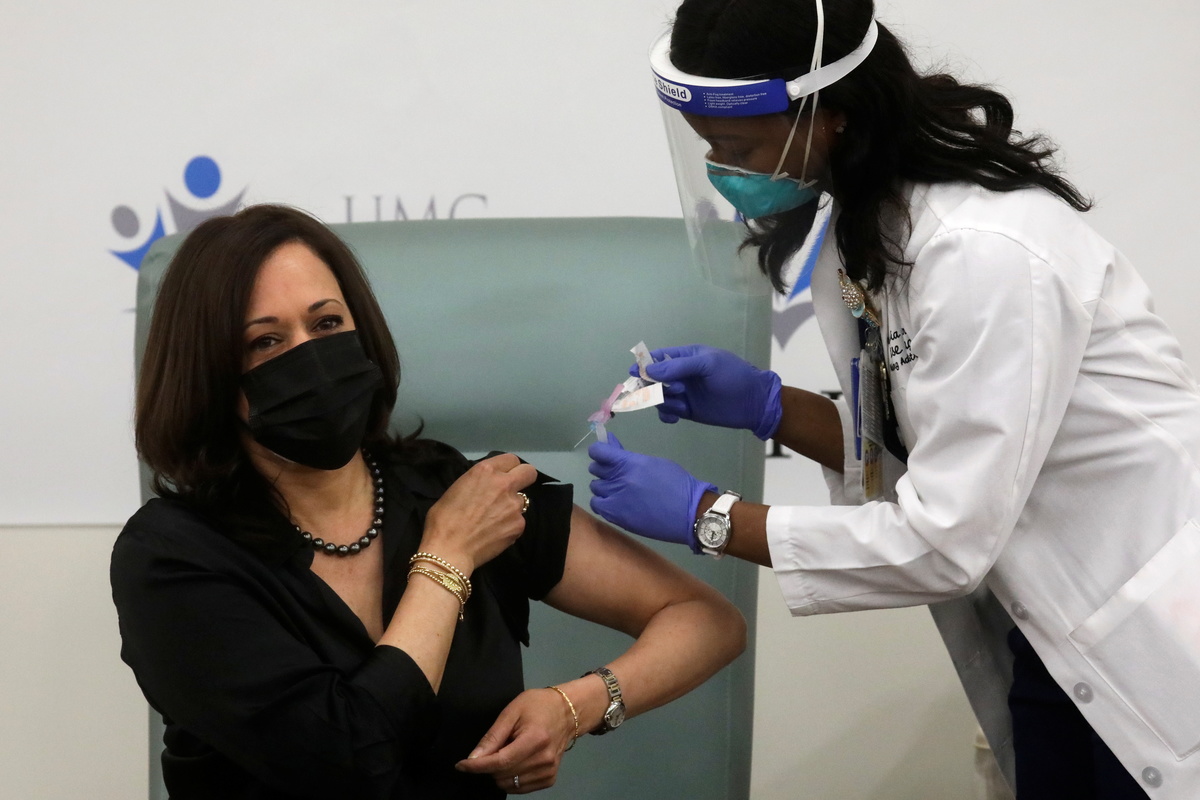 Harris, the first Black person and first Asian-American elected vice president, received the Moderna Inc vaccine at a medical center in predominantly Black southeast Washington.