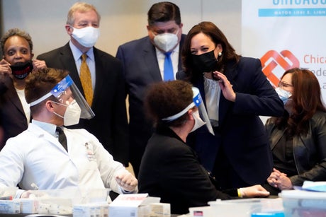 Vice President Kamala Harris on Tuesday urged Chicago union members to share their experience receiving a COVID-19 vaccine and act as “role models" for family and friends who may be reluctant even as Illinois prepares to open access to all adults.