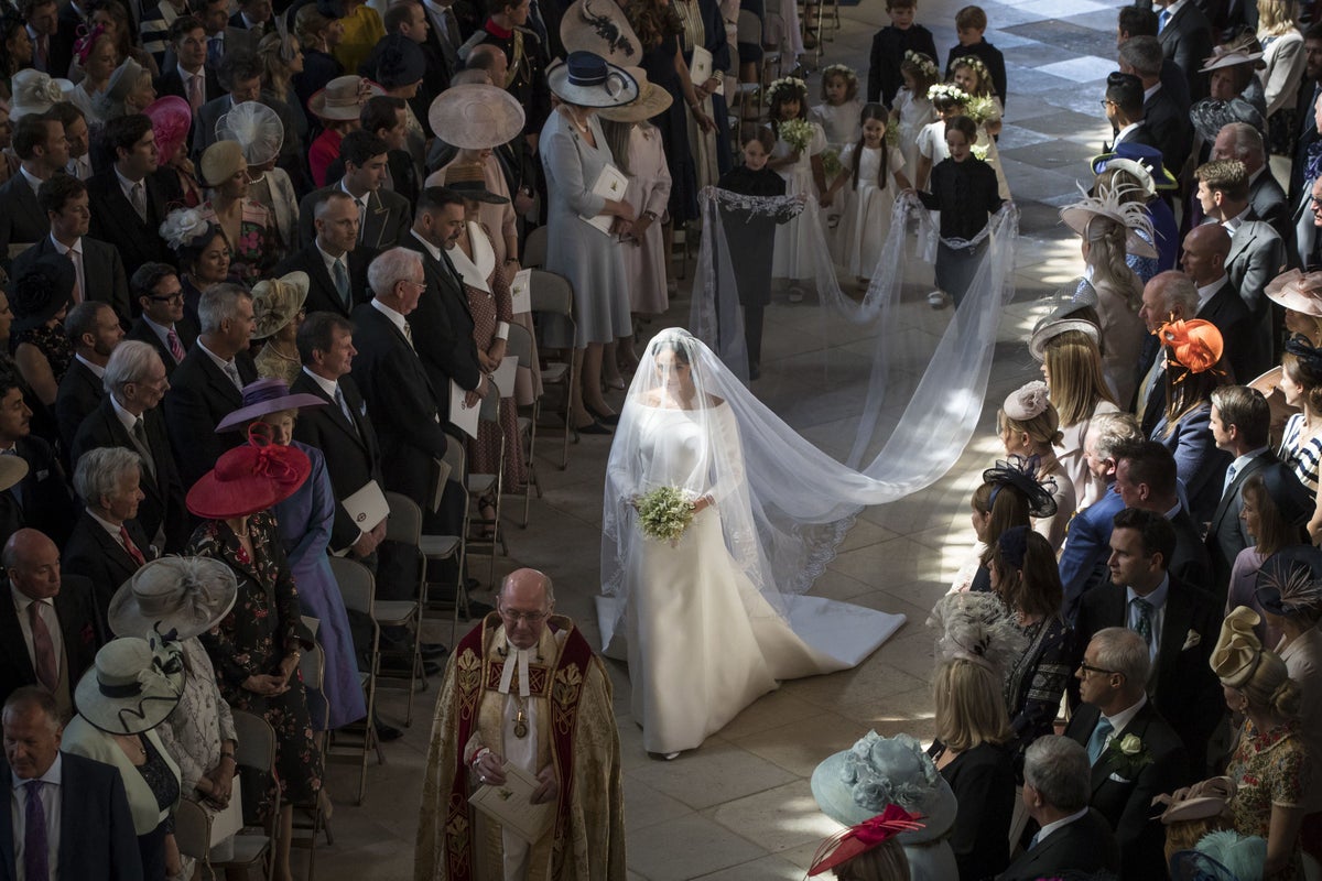 In the absence of her own father, Thomas Markle, who was found to have staged paparazzi photos in the days ahead of the wedding, Meghan was escorted by the now King.