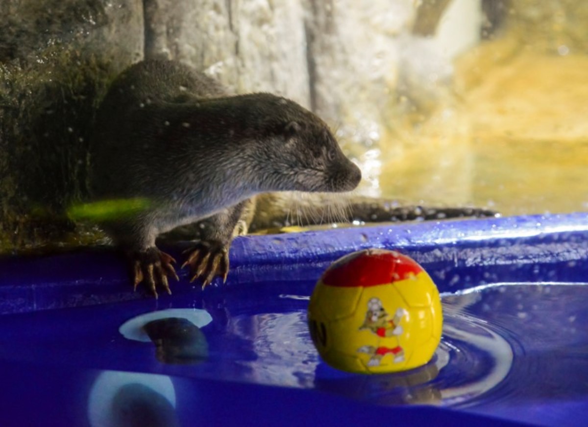 When a Sochi aquarium employee tossed two balls into a pool on Saturday, Harry swam straight over to the red and yellow one labelled Spain, grabbed it in its mouth and dropped it on the side of the pool.