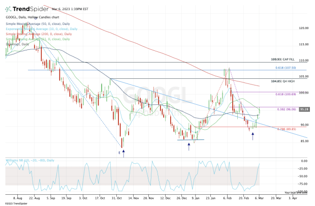 On the flip side, if resistance near $96 holds it will put $92 back in play, where Alphabet finds the 10-day and 50-day moving averages. Ultimately, bulls will want to see the stock hold $90 and if possible, avoid a retest of the recent low near $88.50.