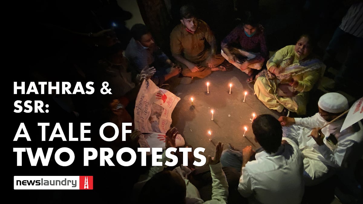 As four Republic TV journalists swirled around this group, ignoring the Hathras protest, the other camp seemed convinced that #JusticeForSSR was put together to undermine their call against caste-based sexual violence. “If the people who are worried for SSR had been this worried about women, this protest would have been bigger, way bigger,” said Anjali.