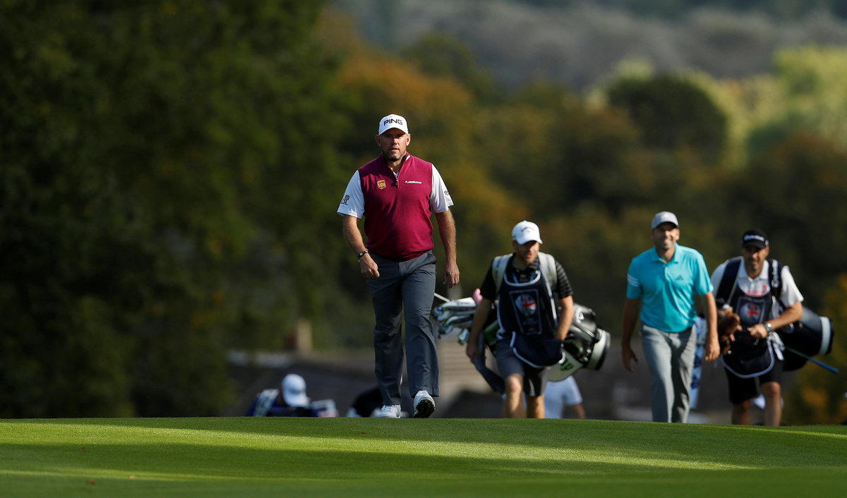 Golf - European Tour - British Masters - Close House, Newcastle upon Tyne, Britain - September 28, 2017 England's Lee Westwood and Spain's Sergio Garcia during the first round Action Images via Reuters/Lee Smith