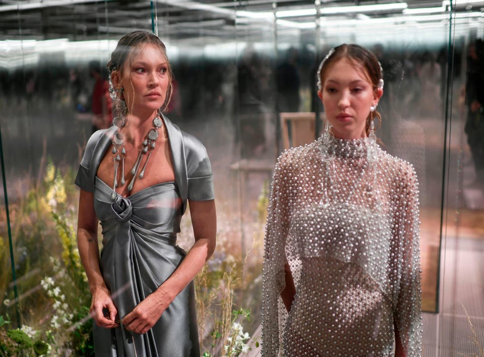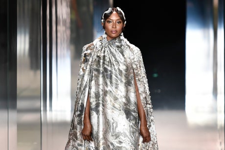 As it happens, Kim Jones also had men on the runway for his couture debut at Fendi. Like his women, they were also outfitted in marbleised suits with power shoulders, courtly dresses with portrait necklines and fluted sleeves, and sweeping capes.