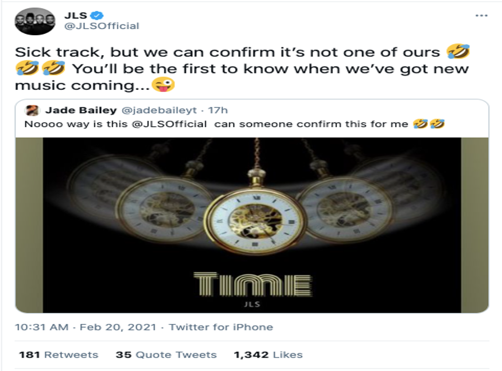 Acknowledging the error after days of confusion, JLS wrote on Twitter on Saturday (20 February): “Sick track, but we can confirm it’s not one of ours.”