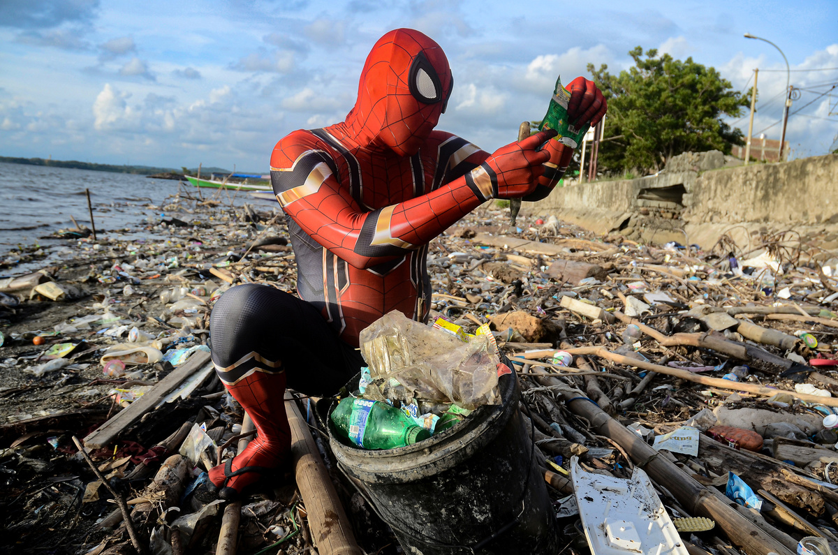 Indonesian cafe worker Rudi Hartono struggled to persuade residents of his small coastal community of Parepare to follow his example and pick up rubbish strewn on the streets and beaches -- until he dressed up as Spider-Man.