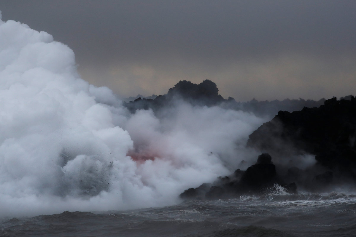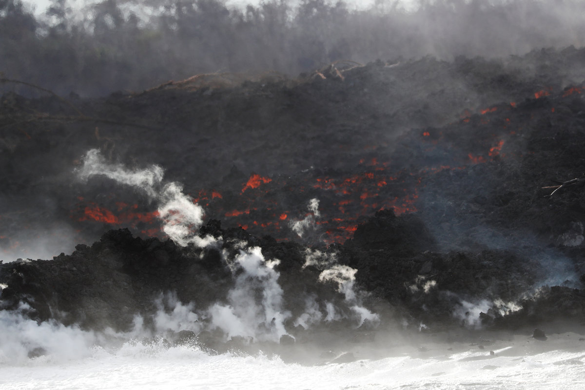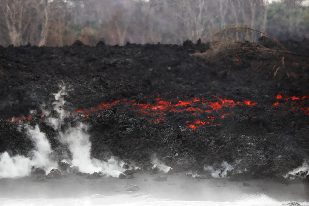 PAHALA, Hawaii (Reuters) - A third lava flow from Hawaii's erupting Kilauea volcano streamed into the ocean on Thursday as U.S. Marine Corps helicopters stood by to evacuate a Big Island community should molten rock or huge cracks block its final escape route.