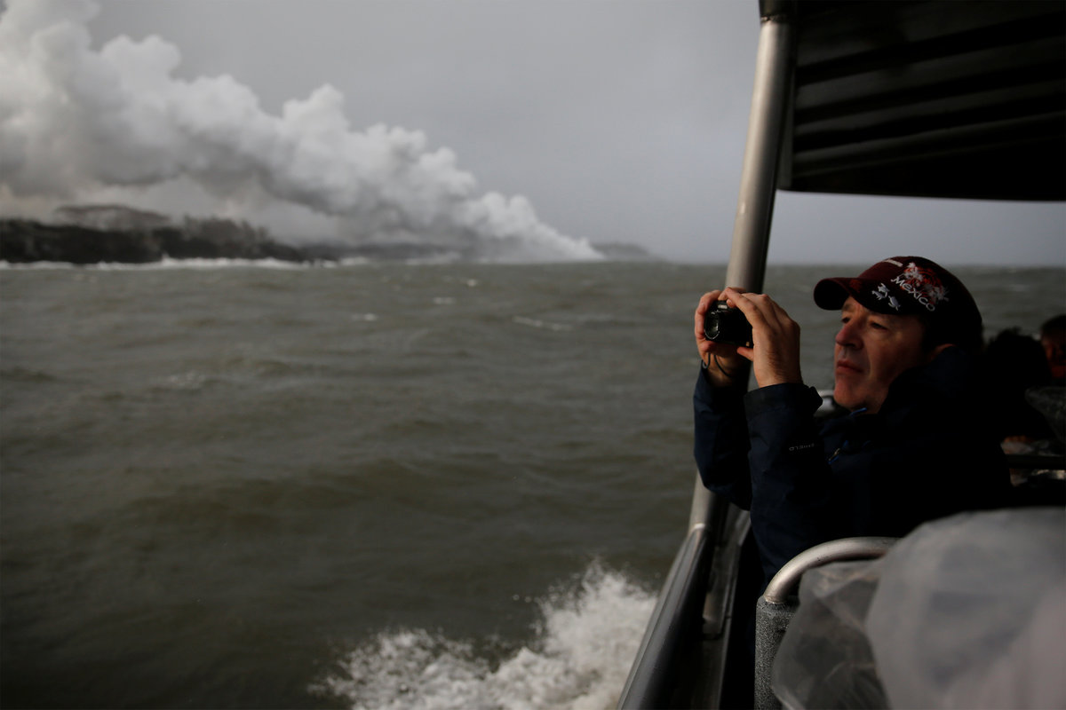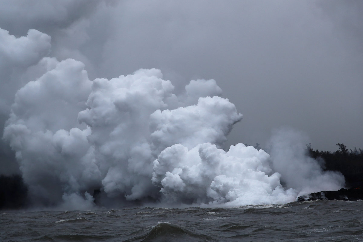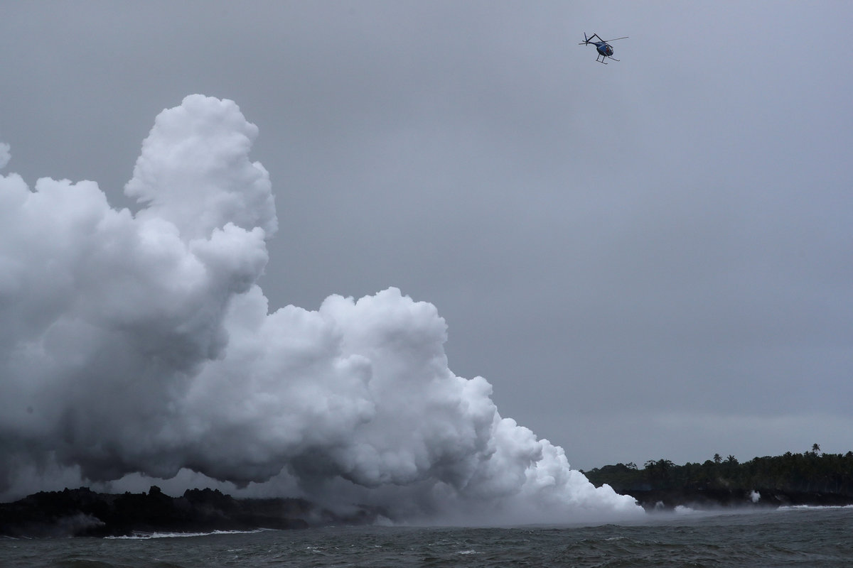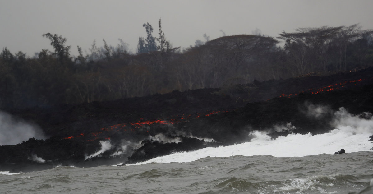 PAHALA, Hawaii (Reuters) - A third lava flow from Hawaii's erupting Kilauea volcano streamed into the ocean on Thursday as U.S. Marine Corps helicopters stood by to evacuate a Big Island community should molten rock or huge cracks block its final escape route.