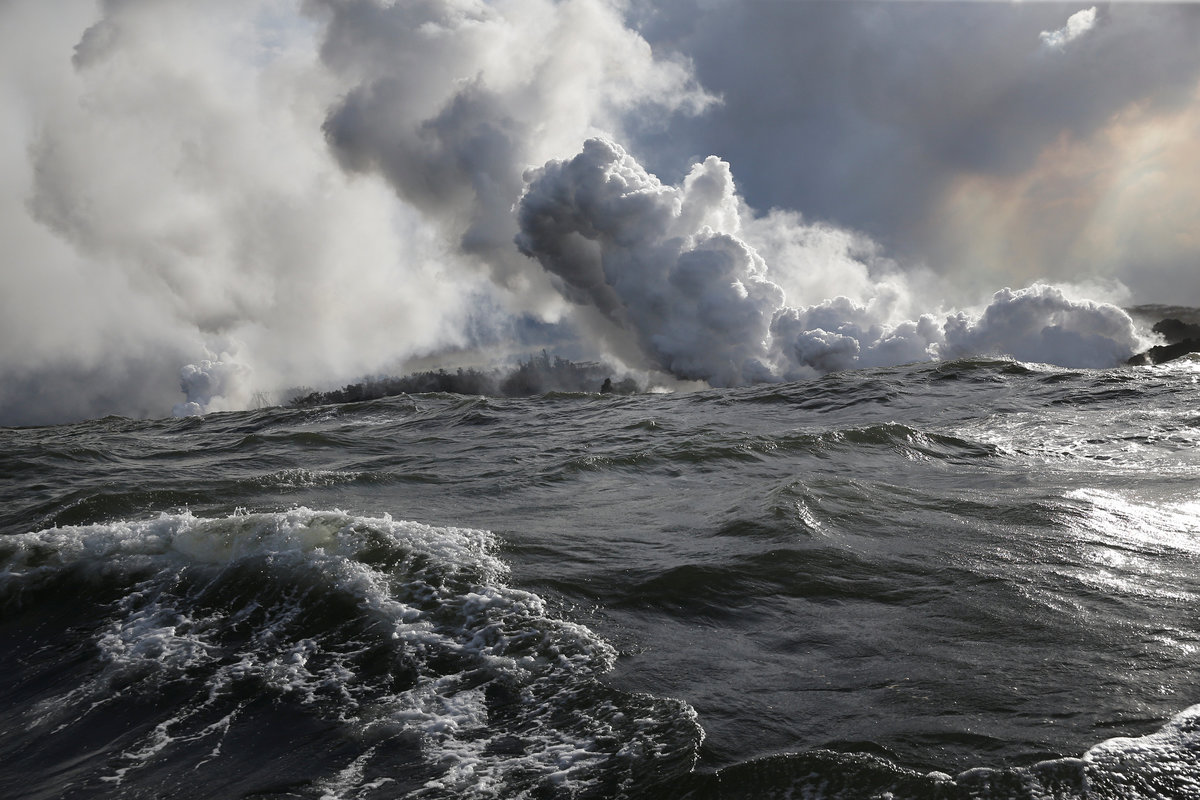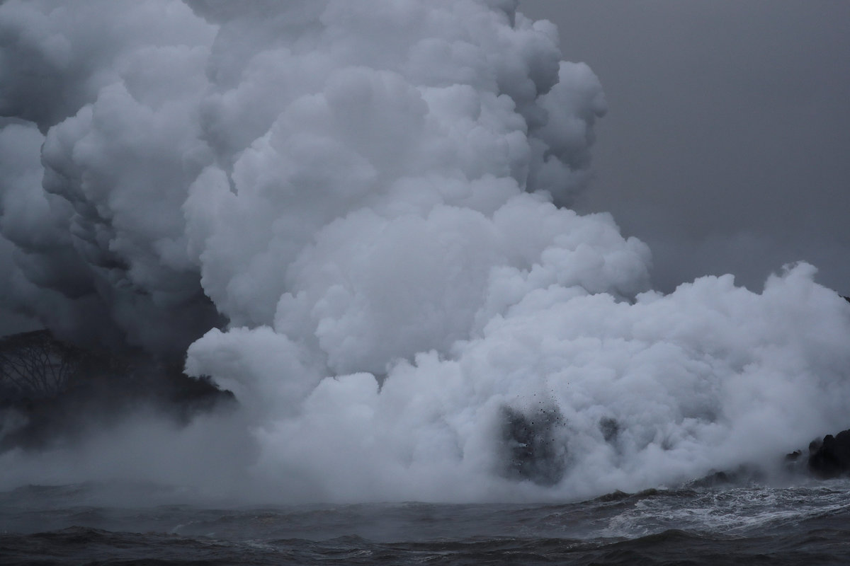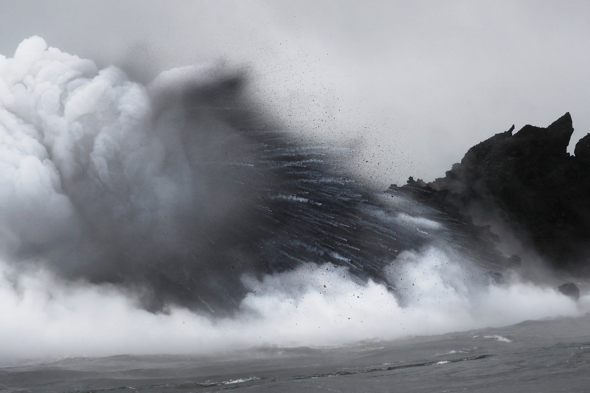 Up at Kilauea's 4,091-foot (1,246-meter) summit, at least 12 explosions a day on average are pumping ash plumes thousands of feet (meters) into the sky. Ash drifted up to 26 miles (42 km)southwest to dust the black sands of Punaluu beach with gray powder before blowing out to sea.