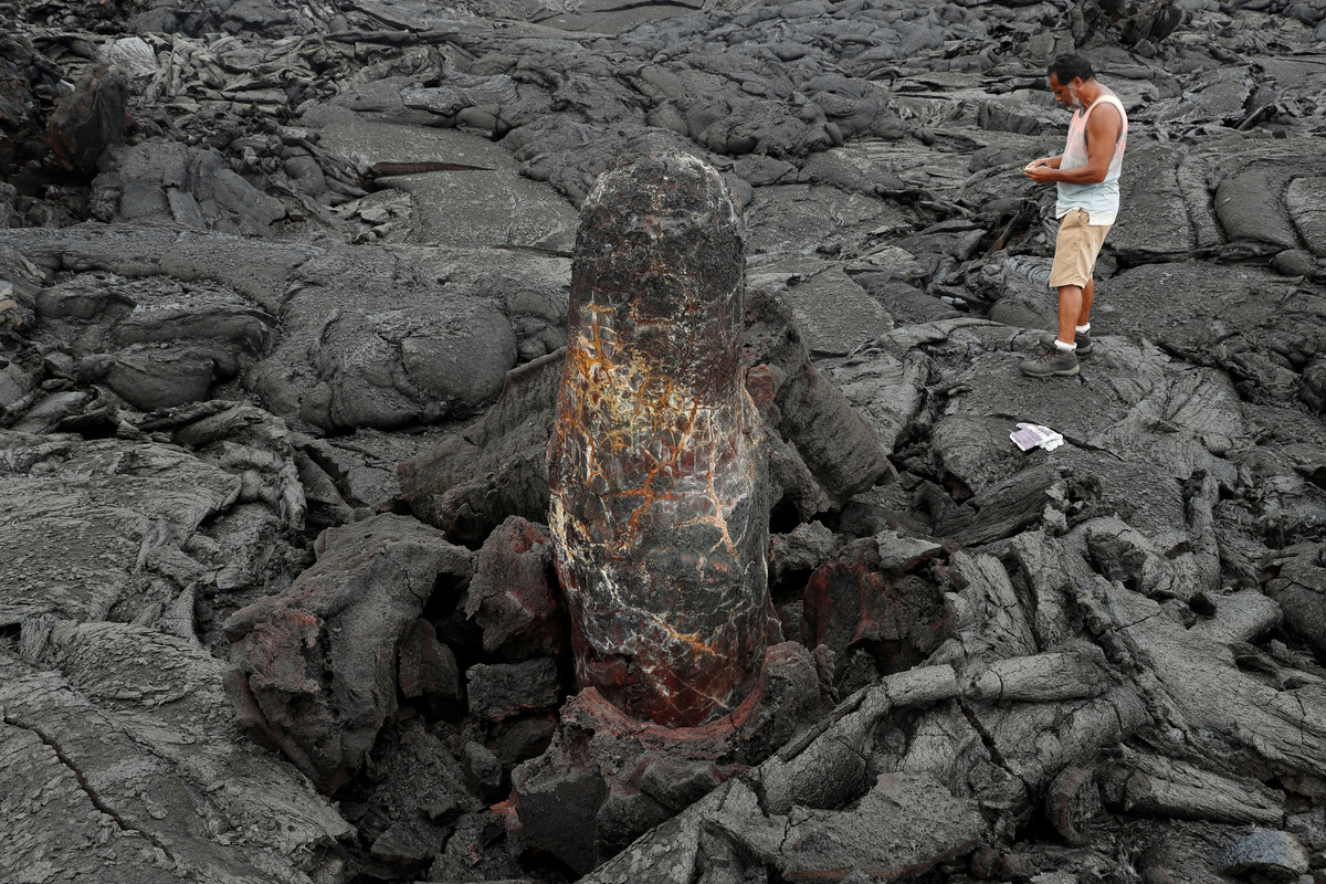 KAPOHO, Hawaii (Reuters) - For weeks on end last year, Darryl Clinton watched the Kilauea Volcano from a front-row seat on the deck of his friend's house in Kapoho on Hawaii's Big Island, only leaving after a "lava bomb" from an erupting ground fissure flew onto the porch and nearly sliced his foot off.