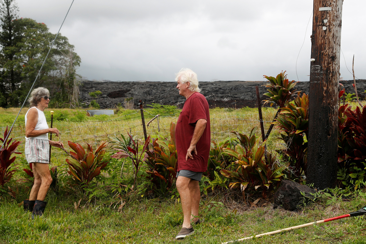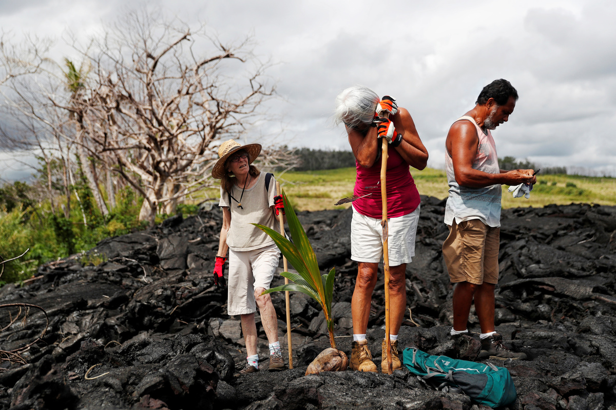 Eric Cohen, 63, who was forced to leave his home when the Kilauea Volcano erupted and covered it with lava last summer, stands on a ridge of cooling lava near his property in Kapoho, in Hawaii, U.S., April 1, 2019. Picture taken April 1, 2019. REUTERS/Terray SylvesterDiane Cohen, 64, (C) who was forced to leave her home when the Kilauea Volcano erupted and covered it with lava last summer, returns to her property with her husband, Eric, and friend, Sara Lau, in Kapoho, in Hawaii, U.S., April 1, 2019. Picture taken April 1, 2019. REUTERS/Terray SylvesterEddie McLaren and his wife, Pauline, who were forced to leave their home after the Kilauea Volcano erupted last summer, work in their yard near a hardened lava flow after returning to their house in Kapoho, in Hawaii, U.S., April 2, 2019. Picture taken April 2, 2019. REUTERS/Terray SylvesterDiane Cohen, 64, who was forced to leave her home when the Kilauea Volcano erupted and covered it with lava last summer, plants coconut trees on her property in Kapoho, in Hawaii, U.S., April 1, 2019. Picture taken April 1, 2019. REUTERS/Terray SylvesterHarald Fischer, 61, of Kapoho, who was forced to leave his home after the Kilauea Volcano erupted last summer, looks at hardened lava after returning to Kapoho, in Hawaii, U.S., March 29, 2019. Picture taken March 29, 2019. REUTERS/Terray SylvesterMugs are seen in the wreckage of a house that burned while the Kilauea Volcano erupted last summer in Kapoho, in Hawaii, U.S., April 2, 2019. Picture taken April 2, 2019. REUTERS/Terray SylvesterResidents, who were forced to leave their homes after the Kilauea Volcano erupted last summer, drive through a hardened lava flow while returning to Kapoho, in Hawaii, U.S., April 3, 2019. REUTERS/Terray SylvesterEddie McLaren and his wife, Pauline, who were forced to leave their home after the Kilauea Volcano erupted last summer, work in their yard near a hardened lava flow after returning to Kapoho, in Hawaii, U.S., April 2, 2019. Picture taken April 2, 2019. REUTERS/Terray SylvesterA lava flow created when the Kilauea Volcano erupted last summer is seen near graffiti on Highway 132 in Kapoho, Hawaii, U.S., March 28, 2019. Picture taken March 28, 2019. REUTERS/Terray SylvesterIngrid Webb, 34, of Kapoho, who was forced to leave her farm after the Kilauea Volcano erupted last summer, inspects a water tank damaged by flowing lava after returning to Kapoho, in Hawaii, U.S., March 30, 2019. Picture taken March 30, 2019. REUTERS/Terray SylvesterResidents, who were forced to leave their homes after the Kilauea Volcano erupted last summer, drive through a hardened lava flow while returning to Kapoho, in Hawaii, U.S., April 3, 2019. REUTERS/Terray SylvesterDiane Cohen, 64, (R) who was forced to leave her home when the Kilauea Volcano erupted and covered it with lava last summer, walks across her property with her friend, Sara Lau, in Kapoho, in Hawaii, U.S., April 1, 2019. Picture taken April 1, 2019. REUTERS/Terray SylvesterResidents, who were forced to leave their homes after the Kilauea Volcano erupted last summer, drive through a hardened lava flow while returning to Kapoho, in Hawaii, U.S., April 3, 2019. REUTERS/Terray SylvesterGinny Vicario, of Kapoho, (C) who was forced to leave her home after the Kilauea Volcano erupted last summer, greets her friend Deb Kalalui while returning to Kapoho, in Hawaii, U.S., April 1, 2019. Picture taken April 1, 2019. REUTERS/Terray SylvesterIngrid Webb, 34, of Kapoho, who was forced to leave her farm after the Kilauea Volcano erupted last summer, inspects a water tank after returning to Kapoho, in Hawaii, U.S., March 30, 2019. Picture taken March 30, 2019. REUTERS/Terray SylvesterHarald Fischer, 61, of Kapoho, who was forced to leave his home after the Kilauea Volcano erupted last summer, looks at the remains of a neighbor's home after returning to Kapoho, in Hawaii, U.S., March 29, 2019. Picture taken March 29, 2019. REUTERS/Terray SylvesterDominic Tidmarsh, 55, who was forced to leave his home after the Kilauea Volcano erupted last summer, returns to the remains of his house in Kapoho, Hawaii, U.S., April 2, 2019. Picture taken April 2, 2019. REUTERS/Terray SylvesterPauline McLaren, 78, who was forced to leave her home after the Kilauea Volcano erupted last summer, returns to her property in Kapoho, in Hawaii, U.S., April 2, 2019. Picture taken April 2, 2019. REUTERS/Terray SylvesterDiane Cohen, 64, (C) who was forced to leave her home when the Kilauea Volcano erupted and covered it with lava last summer, returns to her property with her husband, Eric, and friend, Sara Lau, in Kapoho, in Hawaii, U.S., April 1, 2019. Picture taken April 1, 2019. REUTERS/Terray SylvesterEric Cohen, 63, who was forced to leave his home when the Kilauea Volcano erupted and covered it with lava last summer, uses a compass to look for his property lines in Kapoho, in Hawaii, U.S., April 1, 2019. Picture taken April 1, 2019. REUTERS/Terray SylvesterDominic Tidmarsh and his wife, Melissa Schelling, who were forced to leave their home after the Kilauea Volcano erupted last summer, return to the remains of their house in Kapoho, in Hawaii, U.S., April 2, 2019. Picture taken April 2, 2019. REUTERS/Terray SylvesterIngrid Webb, 34, of Kapoho, who was forced to leave her home after the Kilauea Volcano erupted last summer, looks out her window after returning to Kapoho, in Hawaii, U.S., March 30, 2019. Picture taken March 30, 2019. REUTERS/Terray SylvesterEric Cohen, 63, who was forced to leave his home when the Kilauea Volcano erupted and covered it with lava last summer, uses a compass to look for his property lines in Kapoho, in Hawaii, U.S., April 1, 2019. Picture taken April 1, 2019. REUTERS/Terray SylvesterDiane and Eric Cohen, who were forced to leave their home when the Kilauea Volcano erupted and covered it with lava last summer, look for landmarks after returning to their property in Kapoho, in Hawaii, U.S., April 1, 2019. Picture taken April 1, 2019. REUT