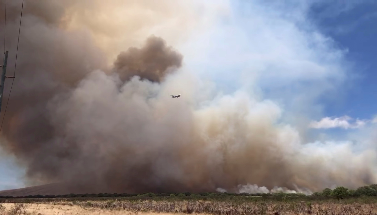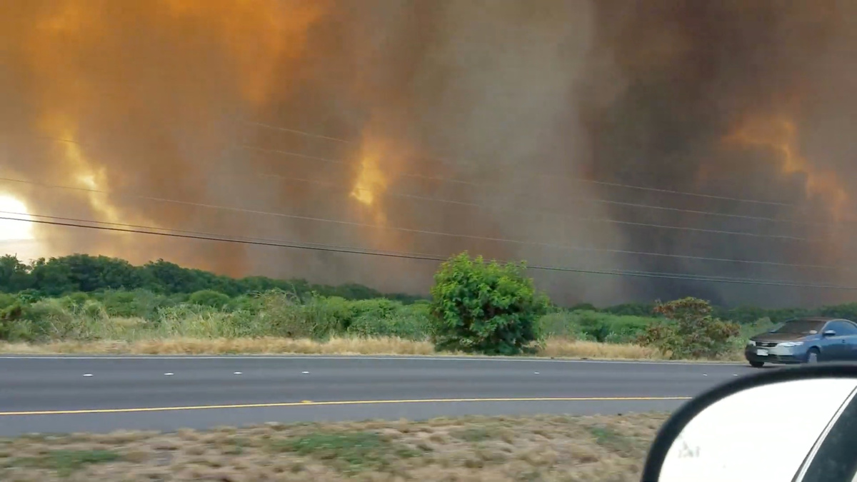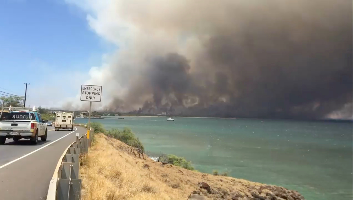 Thousands of residents and visitors in the communities of Maalaea and Kihei fled as a precaution, while firefighters struggling to quell the blaze drafted in helicopters to drop water on the flames.