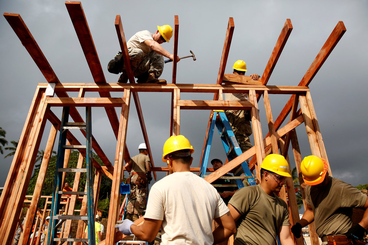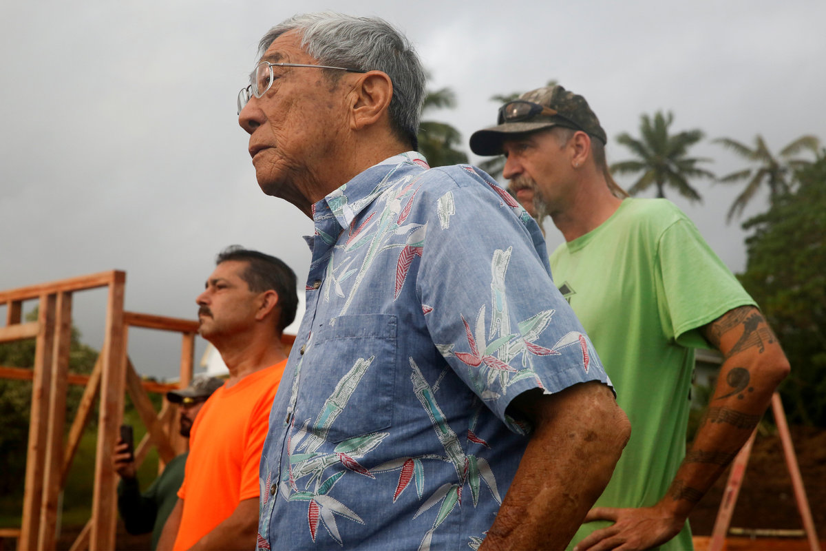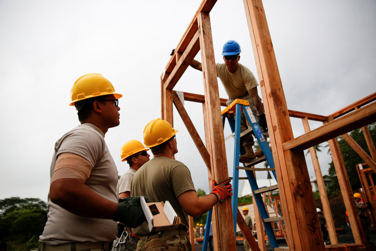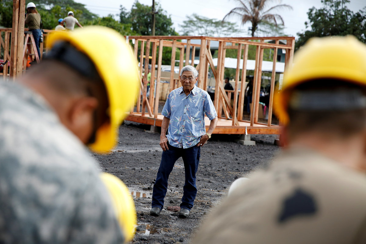 PAHOA, Hawaii (Reuters) - Hundreds of construction workers hammered together 20 temporary housing units on Saturday for families forced from their homes by Hawaii's erupting Kilauea Volcano in what Hawaii County Mayor Harry Kim called a source of hope.
