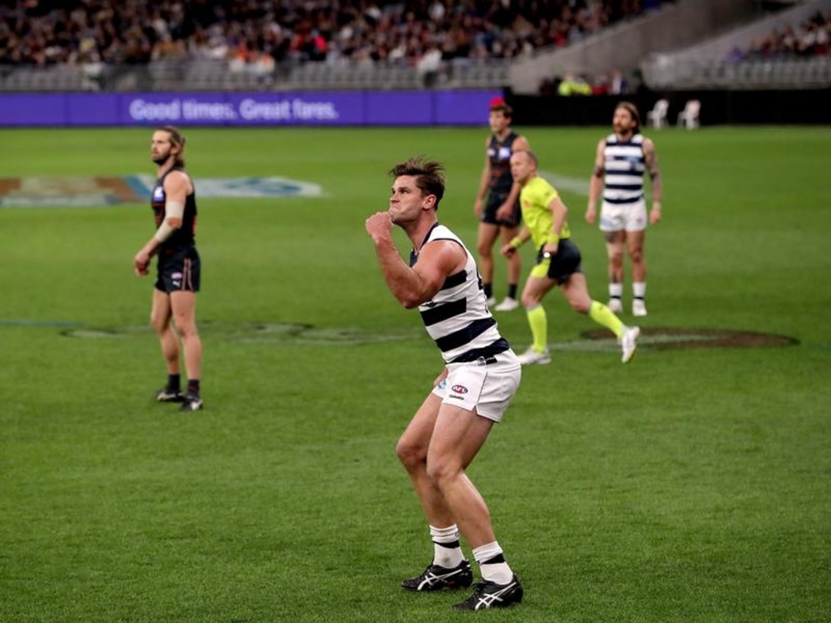 The Cats talisman, who last week played his 300th AFL game, added two more from there to finish with 5.1 from his 19 disposals and eight marks.
