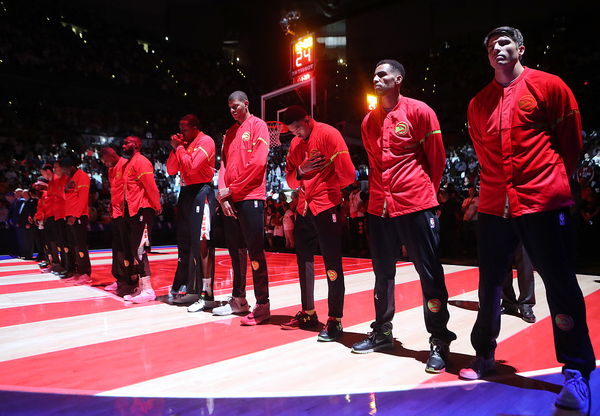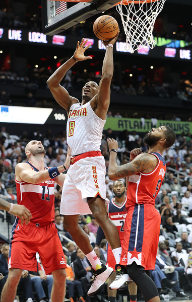 One first-quarter turnover led to an exchange of words and shoves that resulted in four technical fouls. Kent Bazemore turned the ball over to Kelly Oubre Jr. who passed to Beal for dunk with 51.9 seconds left in the period. Beal got up and shoved Bazemore with his shoulder. The teams converged and when the fracas was over Hardaway and Bazemore from the Hawks and Jason Smith and Beal from the Wizards were given technical fouls.