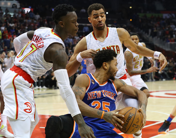 Schroder's free throws gave the Hawks a 100-97 lead. Kristaps Porzingis had a chance to tie the game with 3.6 seconds left after he was fouled on a 3-point attempt by Thabo Sefolosha. However, he missed the first attempt. After making the second, he tried to intentionally miss the third but the Knicks were called for a lane violation.