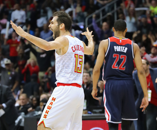 Howard had a double-double by halftime with 14 points and 11 rebounds. Bazemore had 10 points and five assists through two quarters, including feeds to Howard for alley-oop dunks on back-to-back possessions. Howard had 10 points and six rebounds in the second quarter. Calderon played 11 minutes in the second quarter with Schroder on the bench. He had eight points and was a plus-22 in the period but also had three fouls plus a technical.