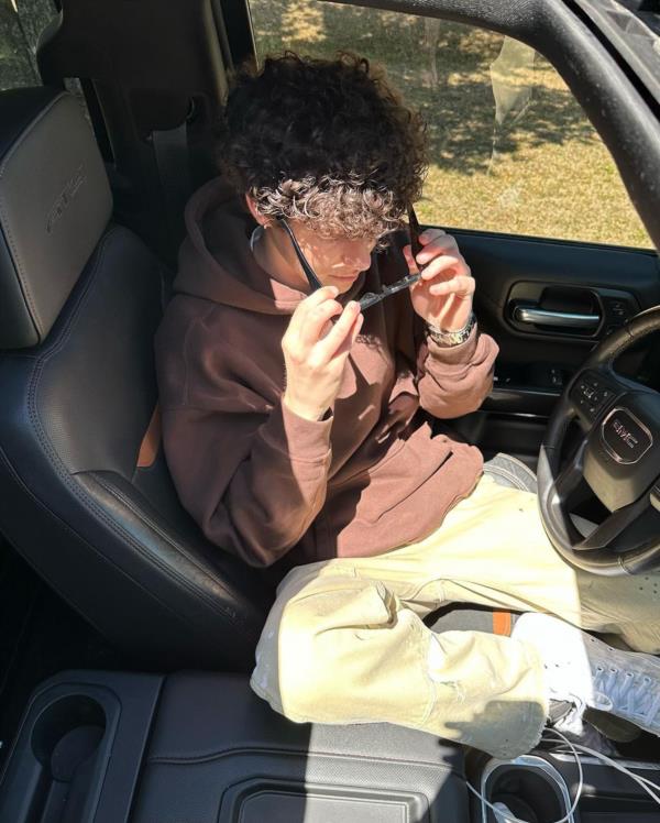 Hayden Summerall recently delighted his fans by sharing a series of captivating photos that showcase his impeccable sense of style. In these snapshots, the young star can be seen posing in a car, effortlessly exuding a laid-back sophistication that is both chic and comfortable.