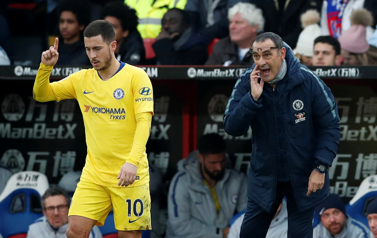 Hazard has 10 goals and 10 assists in the league this season, often playing up front in a 'false nine' role to lead the attack but Sarri might play him on the wing again after the arrival of Argentine striker Gonzalo Higuain.