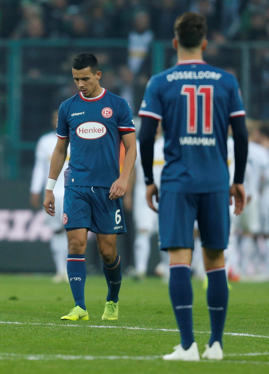 Soccer Football - Bundesliga - Borussia Moenchengladbach v Fortuna Duesseldorf - Borussia-Park, Moenchengladbach, Germany - November 4, 2018 Fortuna Dusseldorf's Alfredo Morales and Kenan Karaman look dejected REUTERS/Leon Kuegeler