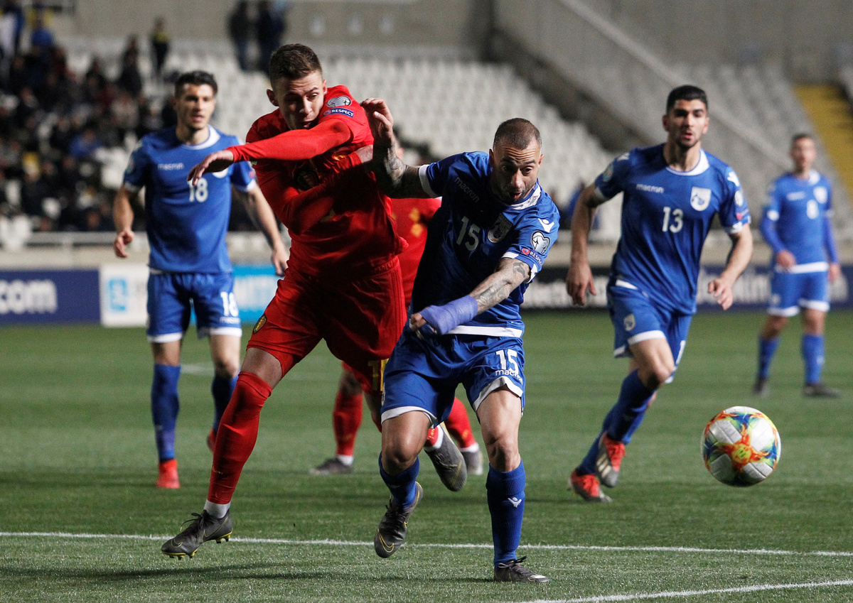 NICOSIA (Reuters) - Eden Hazard marked his 100th cap with an early goal to set Belgium on their way to a comfortable 2-0 away win over Cyprus in their Euro 2020 qualifier on Sunday.