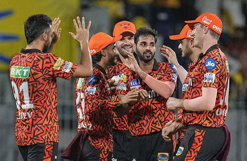 Hyderabad captain Pat Cummins conceded only seven runs in a miserly penultimate over to tilt the match in the home team's favour.ANI7/10:Shaky start for Hyderabad