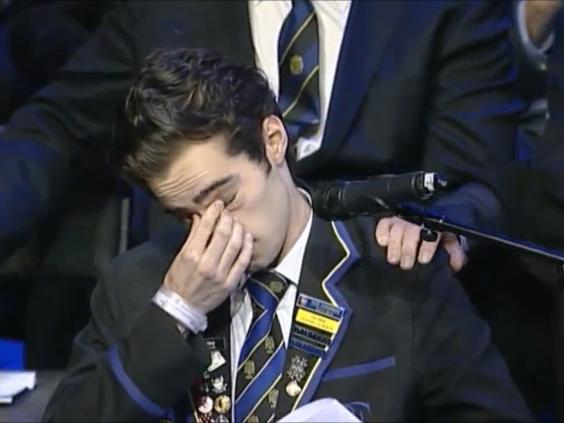 But last week, the 18-year-old made a surprise visit and delivered a profound 20-minute address at the ceremony; the footage has now received over 250,000 views on YouTube.